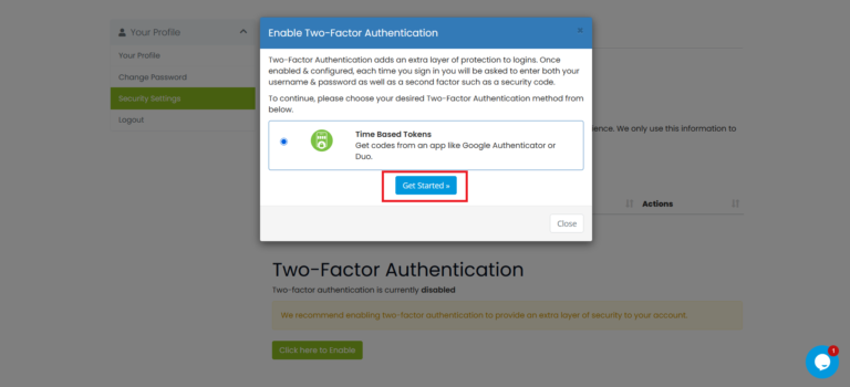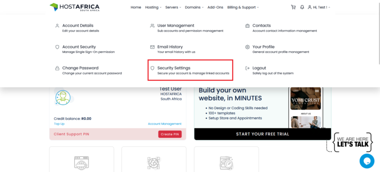 Step 1: Login to your account and select the Profile dropdown, then Security Settings