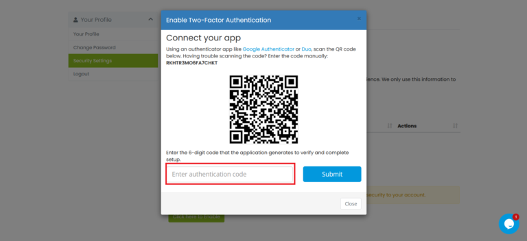 Once 2FA has been setup, you will be requested to enter the code when logging in.